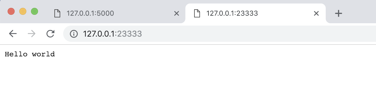 rdr pass on lo0 inet proto tcp from any to any port = 23333 -> 127.0.0.1 port 5000